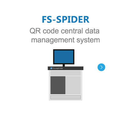 FS-SPIDER QR code central data management system includes code pack source, code spraying link, sample collection link, and direct uploading.